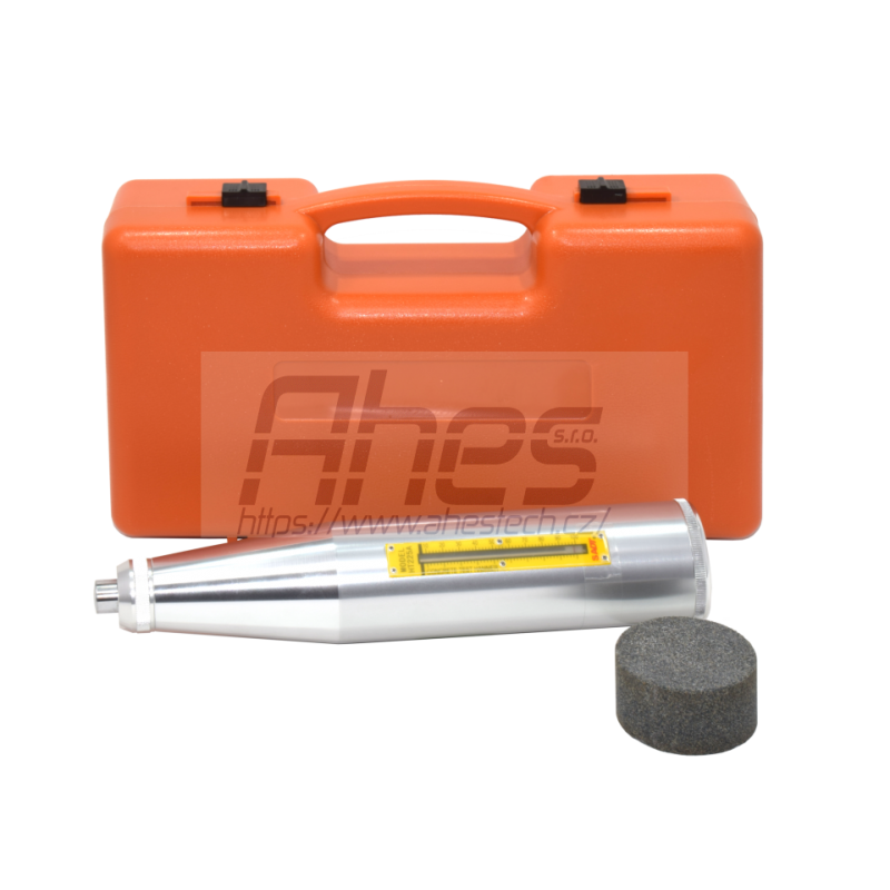 používá se k vyhodnocení tvrdosti povrchu ztvrdlého betonu za účelem stanovení předpokládané pevnosti betonu v tlaku, zkušební kladívko na beton, se používá pro nedestruktivní zkoušení ztvrdlého betonu, kladívko umístěné v pouzdru je vymrštěno pružinou proti povrchu betonu, na základě velikosti odrazu kladívka od betonu se odvodí pevnost betonu v tlaku, tvrdoměr se vždy při objednávce expeduje od výrobce kalibrovaný, může být ale rovněž na přání zákazníka (za příplatek) laboratorně kalibrovaný a opatřen zkušebním certifikátem/atestem ISO, velice jednoduchá obsluha, na zadní straně přístroje převodní tabulka, rozměr ø66 × 280mm, hmotnost 1kg, balení obsahuje: zkušební kladívko na beton, brusný kámen k přípravě povrchu, přenosný kufr