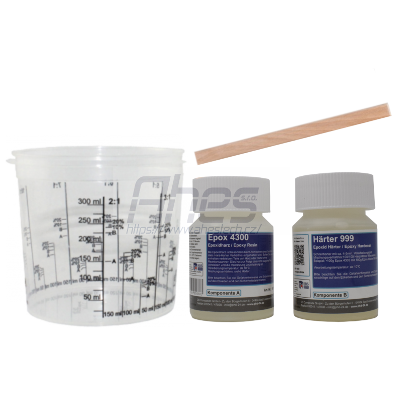 sada obsahuje: speciální lepidlo 2-K na bázi epoxidové pryskyřice 200g (Kat.č.: 85.400.255), 5 kusů směsných nádobek 300ml (Kat.č.: 40.660.030) a 10kusů dřevěného míchadla 260mm