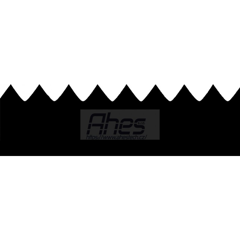 ze speciálně tvrzené oceli, pro vytvoření vyšší vrstvy, přičemž výše vrstvy se mění i podle druhu použitého materiálu, šířka 560mm, špičaté oboustranné ozubení o rozměrech: 4,2x5,7x0,2mm, úhel ozubení 60°