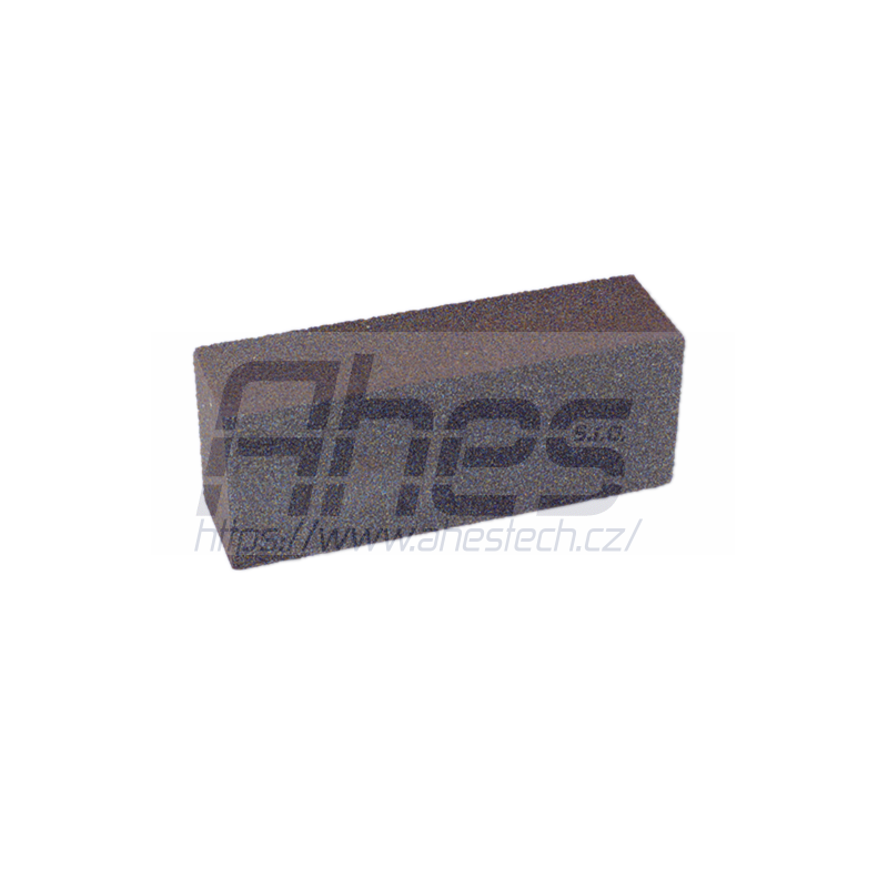 obsahuje karbid křemíku ve vazbě se syntetickou pryskyřicí, karbid křemíku je teplotně odolný do cca 1600°C a vyznačuje se svými tvrdými krystaly s ostrými hranami, je tvrdší a křehčí než korund, používá se na neželezné kovy, nerezavějící ocel, keramické a nerostné materiály, jako je beton, zdivo, přírodní kámen a ocel s vysokým obsahem uhlíku, zrno 16, rozměry: 150x50x50mm