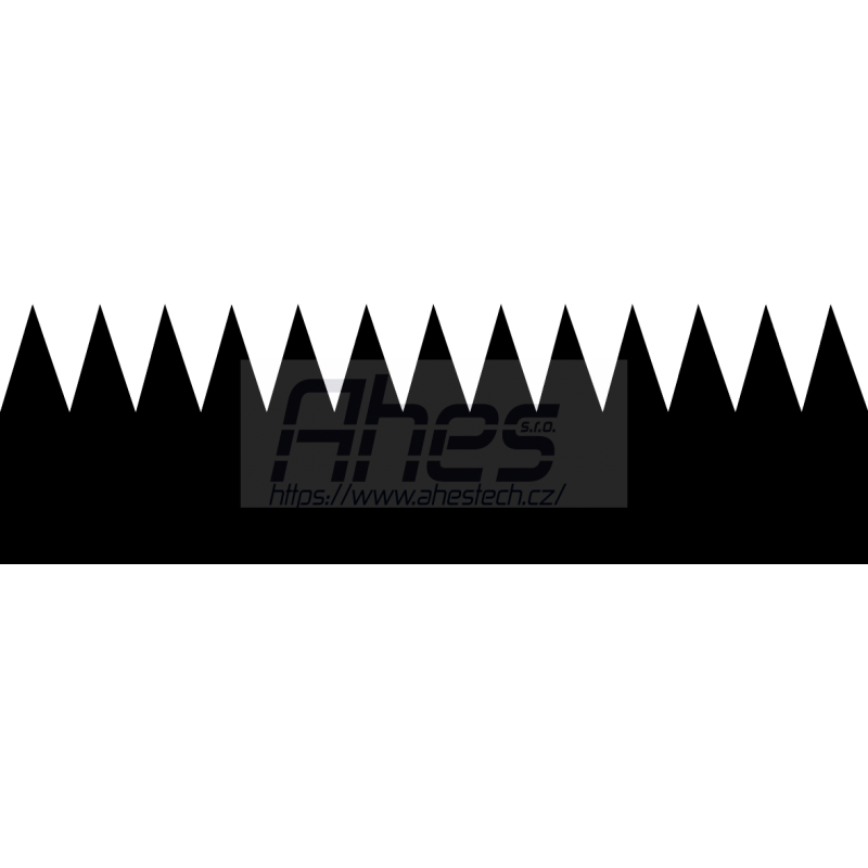 ze speciálně tvrzené oceli, pro vytvoření vyšší vrstvy, přičemž výše vrstvy se mění i podle druhu použitého materiálu, šířka 560mm, špičaté oboustranné ozubení, výška zubu 4,6mm, mezera mezi zuby 2,8mm, špička zubu 0,2mm , úhel ozubení 60°