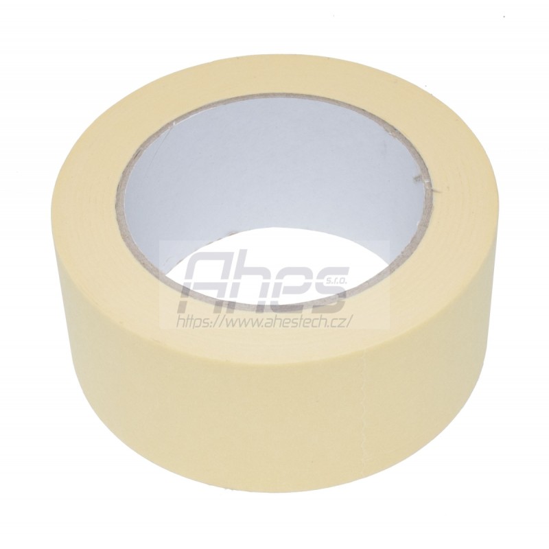 impregnovaná, pevná, plošně krepovaná papírová lepicí páska na povrchu potažená měkkým syntetickým kaučukem, papírovou pásku odstraníme jednoduše zahřátím a následným sloupnutím, tloušťka cca 110μm, šířka 25mm, délka 50m