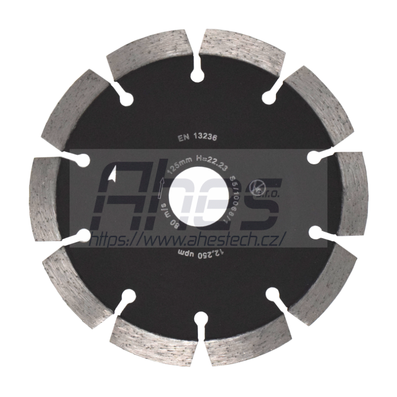 abrazivní stavební materiály (mazanina, čerstvý beton, pískovec atd.), slinován, suchý a mokrý řez, Ø180mm, tloušťka diamantu 2,3mm, výška segmentu 10mm, otvor 22,2mm