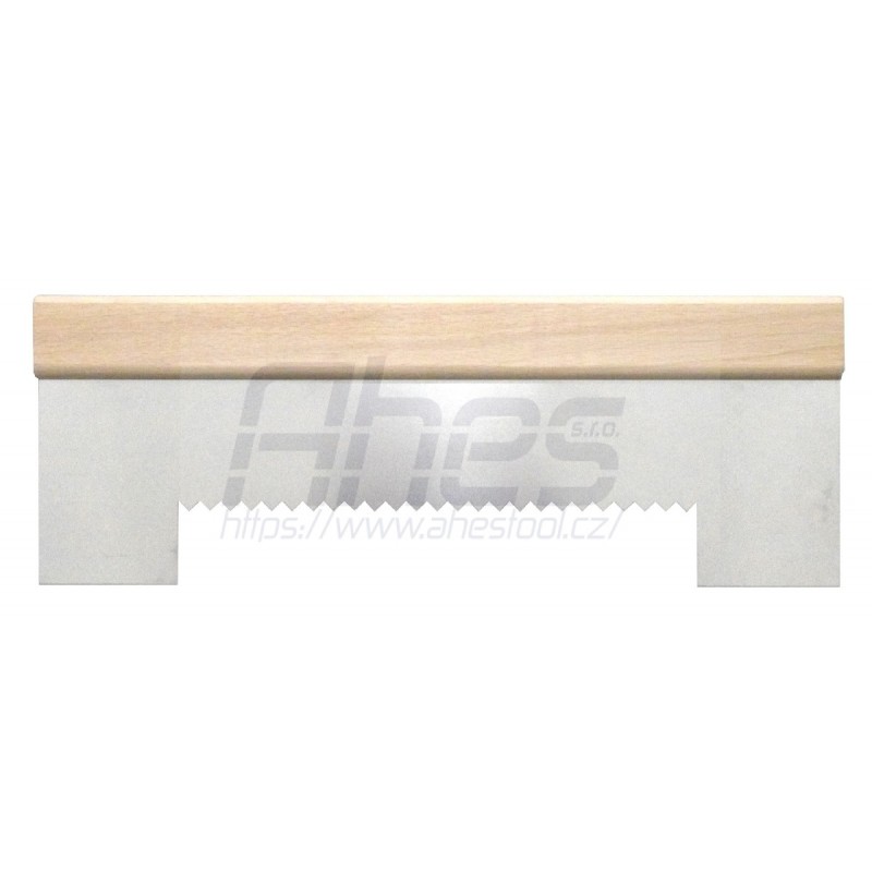 Nerez, tloušťka čepele 0,8mm, nelakovaná voskovaná dřevěná rukojeť, ozubení S4 (5,1mmX10,3mmX0,2mm, 90°).