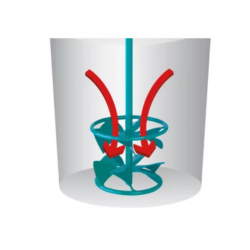 HEXAFIX® připojení, míchadlo vhodný pro tekuté a lehké materiály, přípravu barev, disperzí, lepidel s obsahem vláken, tenkovrstvé malty a sádrové omítky. Dvě přes sebe uložené turbínové lopatky zajišťují jednolitý proud materiálu bez stříkání zvrchu ke stranám a díky rotaci zabraňují vzniku chuchvalců, délka cca 590mm, Ø120mm na 15-30 litrů, míchací účinek: shora dolů