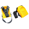 žluté, mají 2 pásky k pevnému upnutí nad a pod kolenem, které zajišťují, že se chrániče neposunou, stupeň ochrany kolen je č. 0, tyto chrániče jsou vhodné pro rovný povrch a nenabízí ochranu proti propíchnutí, například pro obkladače, parketáře a stavební dělníky, žluté, hranatý tvar s polyuretanovou vycpávkou, certifikované dle DIN EN 14404 s 2 pásky.