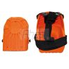 barva oranžová, stupeň ochrany je č. 2 tyto chrániče jsou vhodné pro rovné nebo i nerovné podlahové plochy, na kterých neleží žádné předměty, které jsou vyšší než 10mm, poskytuje ochranu proti propíchnutí při síle minimálně 250N, vyrobeno z polyuretanu, vlnitá vložka zabraňuje pronikání materiálu přes chránič kolen, s ergonomickou pružnou poduškou, hranatý tvar