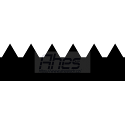 ze speciálně tvrzené oceli, pro vytvoření vyšší vrstvy, přičemž výše vrstvy se mění i podle druhu použitého materiálu, šířka 280mm, špičaté oboustranné ozubení, výška zubu 5,5mm, mezera mezi zuby 6,5/1,9mm, špička zubu 0,5mm, úhel ozubení 60°