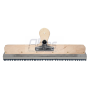 nerezová stěrka, se svorkovnicí k připevnění ozubených lišt, stěrka slouží k nanášení a roztírání podlahového materiálu ve stoje a to za pomocí násady (kat.č. 30.324.140), kdy se tlačí před sebou a díky tomuto pohybu je práce méně namáhavá na záda, stěrka má předvrtané otvory pro hliníkový držák násady (kat.č. 30.300.024, 30.300.028, 30.300.129), délka 560mm, balení se standardním držákem násady Ø28mm (Kat.č.:30.300.028), (balení bez ozubené lišty)
