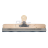 nerezová stěrka, se svorkovnicí k připevnění ozubených lišt, stěrka slouží k nanášení a roztírání podlahového materiálu ve stoje a to za pomocí násady (kat.č. 30.324.140), kdy se tlačí před sebou a díky tomuto pohybu je práce méně namáhavá na záda, stěrka má předvrtané otvory pro hliníkový držák násady (kat.č. 30.300.024, 30.300.028, 30.300.129), délka 560mm, balení s držákem násady se závitem Ø28mm (kat.č.:30.300.129), (balení bez ozubené lišty)